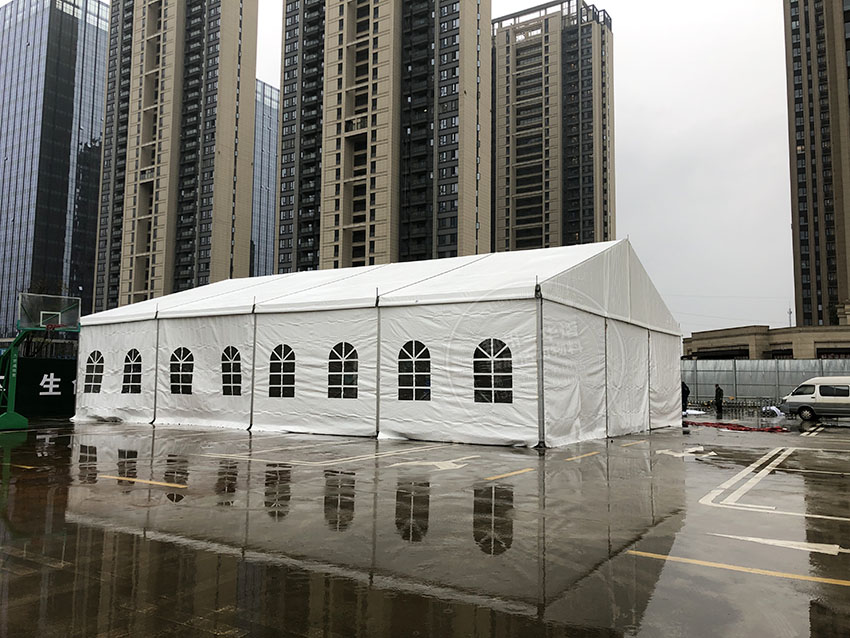 特性可抗8-10级大风。如图我们可以看出郑州华之熠所搭建的白色大篷房是在冒着大雨大风天气搭建出来的,可见再