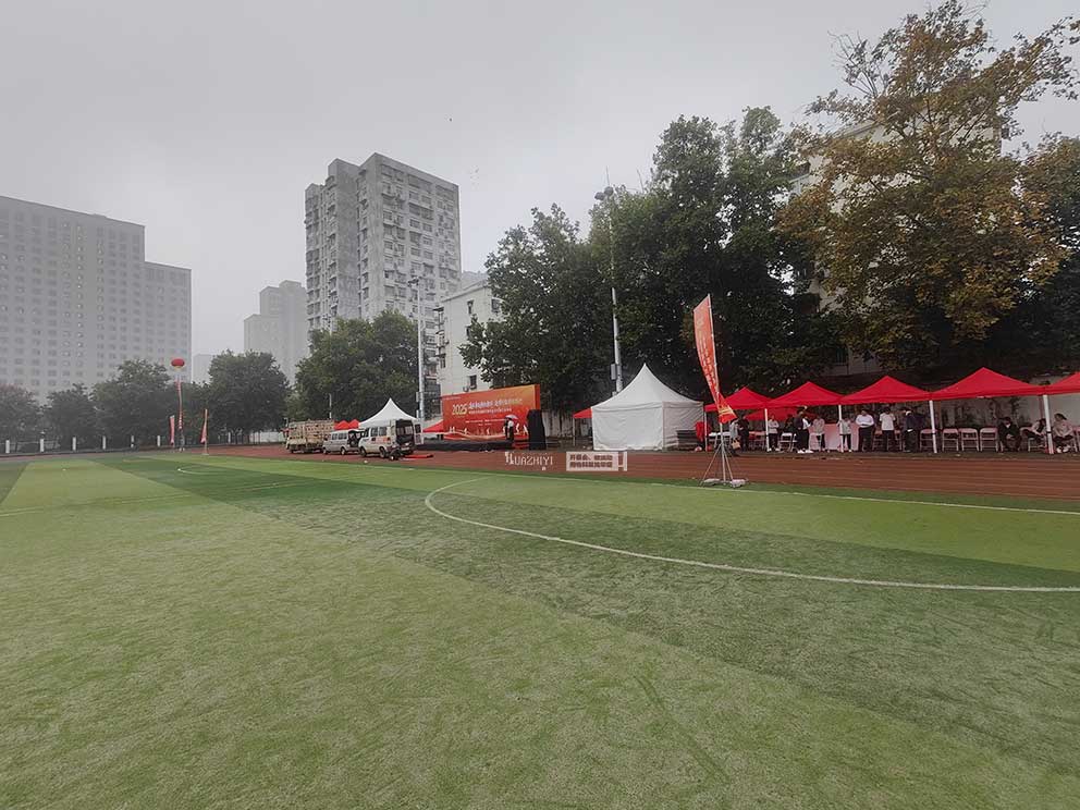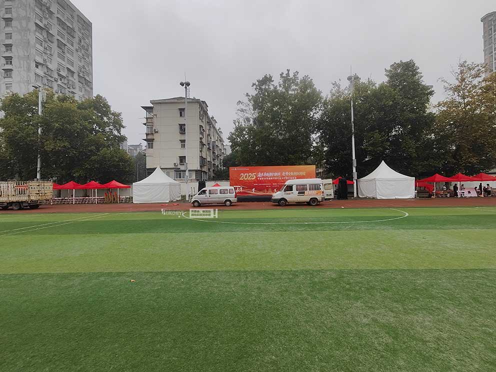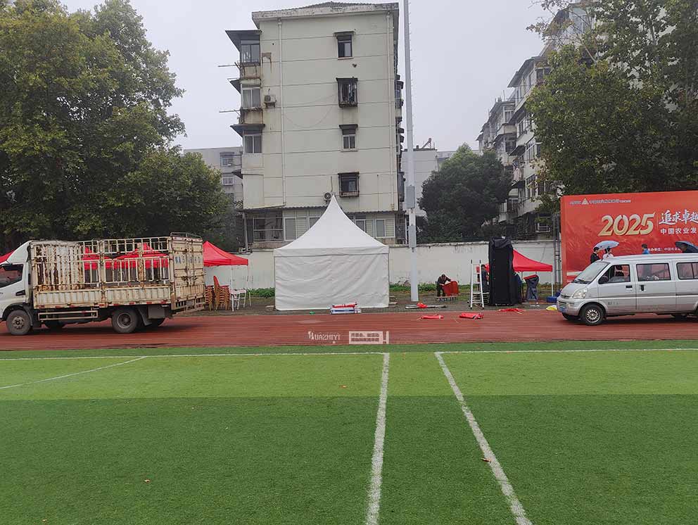 平顶山篷房租赁精准把握中国农业发展银行湖北分行职工运动会的活动特性,以尖顶篷房、折叠帐篷、桁架、折叠椅、道旗等物料,通过科学布局为运动会打造出“功能清晰、氛围热烈、服务周全”的场地空间,助力活动有序开展。 平顶山篷房租赁巧妙运用色彩与造型的搭配,让篷房成为运动会现场的视觉亮点。白色尖顶篷房选用高密度PVC篷布,单顶直径5米、高度4.5米,造型轻盈雅致,主要分布在场地核心区域。红色折叠帐篷则采用醒目亮眼的红色牛津布顶篷,3米×3米的规格灵活便捷。 桁架、折叠椅、道旗等物料的协同配合,为运动会提供了全方位的功能支撑。桁架搭建在运动会场地中心,表面覆盖印有“中国农业发展银行湖北分行职工运动会”字样的喷绘布。折叠椅轻便实用,布置在白色尖顶篷房内的休息区与赛事观礼区。道旗则沿运动场周边道路两侧整齐排列,印有农发行logo,3.5米的高度在风中舒展,形成引导人流、烘托氛围的“动态风景线”。 平顶山篷房租赁为中国农业发展银行湖北分行职工运动会打造了一套全方位的布场方案。这套方案既满足了运动会对功能分区、氛围营造的需求,又充分考虑了职工的参与体验,让运动会在热烈有序的氛围中展现团队凝聚力。