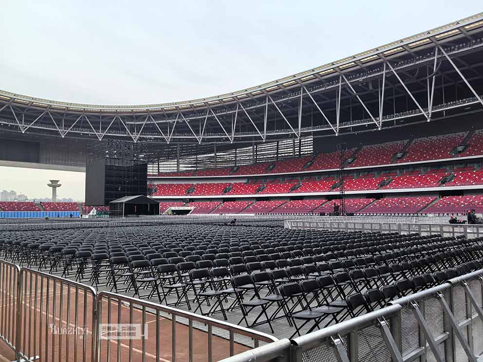 郑州音乐节篷房租赁深刻把握音乐节“安全第一、体验至上”的核心需求,以尖顶篷房、折叠椅、铁马护栏及防爆栏为核心布场物料,在奥体中心构建起功能完备的服务与安全体系,为万名观众打造沉浸式且安心的音乐节体验。 郑州音乐节篷房租赁布置的尖顶篷房成为不可或缺的服务枢纽。在奥体中心内部,多座白色尖顶篷房分布,尖顶篷房造型醒目,其轻量化铝合金框架与防水篷布也能应对天气变化,为各项服务的稳定开展提供保障。 郑州音乐节篷房租赁在奥体中心内部布置的折叠椅选用轻便加固款,便于快速布置与收纳。铁马护栏在整场活动中发挥着关键的秩序维护作用,在场内通道、休憩区与服务站之间,用铁马护栏划分清晰动线,避免人流交叉拥堵;在舞台周边非观演区设置缓冲隔离带,确保观众与舞台工作人员的通行安全。铁马护栏通过专用卡扣紧密拼接,稳固性强,能有效引导人流走向。 一场成功的音乐节,是舞台精彩与物料保障的完美融合。郑州音乐节篷房租赁以专业的布场方案,为“同一个梦音乐盛典”筑牢了安全与服务的基石。从服务观众的尖顶篷房、折叠椅,到维护秩序的铁马护栏与防爆栏,每一项物料都精准适配音乐节场景需求,让观众在享受音乐魅力的同时,也能感受到细致周到的保障服务,让这场音乐盛典成为兼具活力与安全感的难忘盛宴。