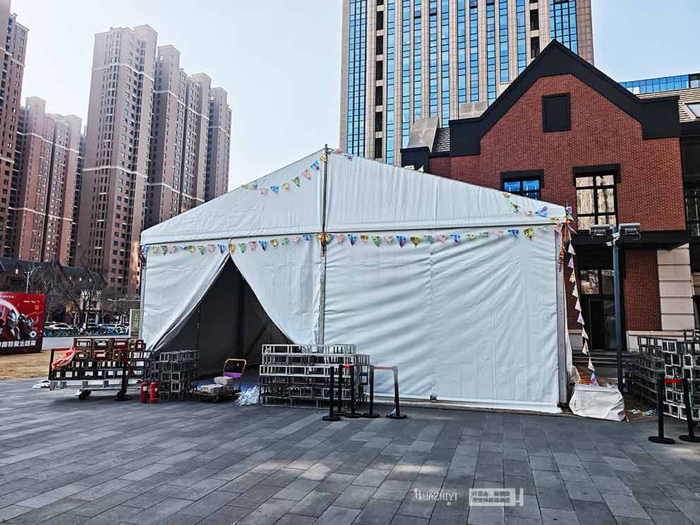 三门峡篷房出租深入把握海汇美术馆的艺术定位与活动核心氛围,精选白色人字形篷房作为核心布场物料。纯净的白色自带清新治愈感,与小动物冒险活动的温馨主题高度契合,同时与美术馆的艺术装修风格相得益彰,不会破坏场地原有的艺术氛围;经典的人字形结构线条流畅大气,外观简约雅致,在美术馆场地中既能发挥场地支撑作用,又能成为一处简约的视觉亮点,为活动增添一份灵动美感。