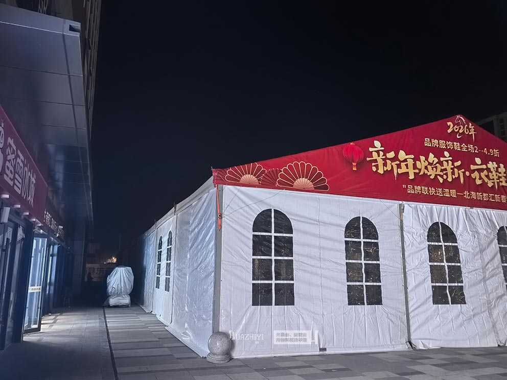 品质过硬的篷房同时兼顾安全与实用性,为活动保驾护航。采用高强度铝合金框架搭配进口PVC篷布,经高频焊接工艺处理,具备优异的抗风、防雨、防晒及阻燃性能,可抵御河南多变的户外天气,确保活动不受风雨干扰。篷房内部无多余梁柱,空间使用率达90%以上,可灵活搭配硬体墙、顶幔、照明、空调等配套设施,适配商业展销、节日庆典、研学团建等不同场景的功能需求。
